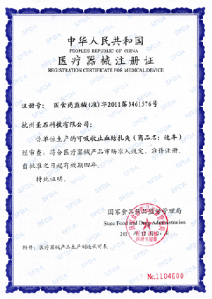 近日,我公司產(chǎn)品可吸收止血結(jié)扎夾(商品名:速豐)正式獲得國家食品藥品監(jiān)督管理局頒發(fā)的第三類醫(yī)療器械產(chǎn)品注冊證書,注冊證號:國食藥監(jiān)械(準(zhǔn))字2011第3461576號。(參見國家藥監(jiān)局網(wǎng)站http://www.sda.gov.cn/WS01/CL0403/68257.html